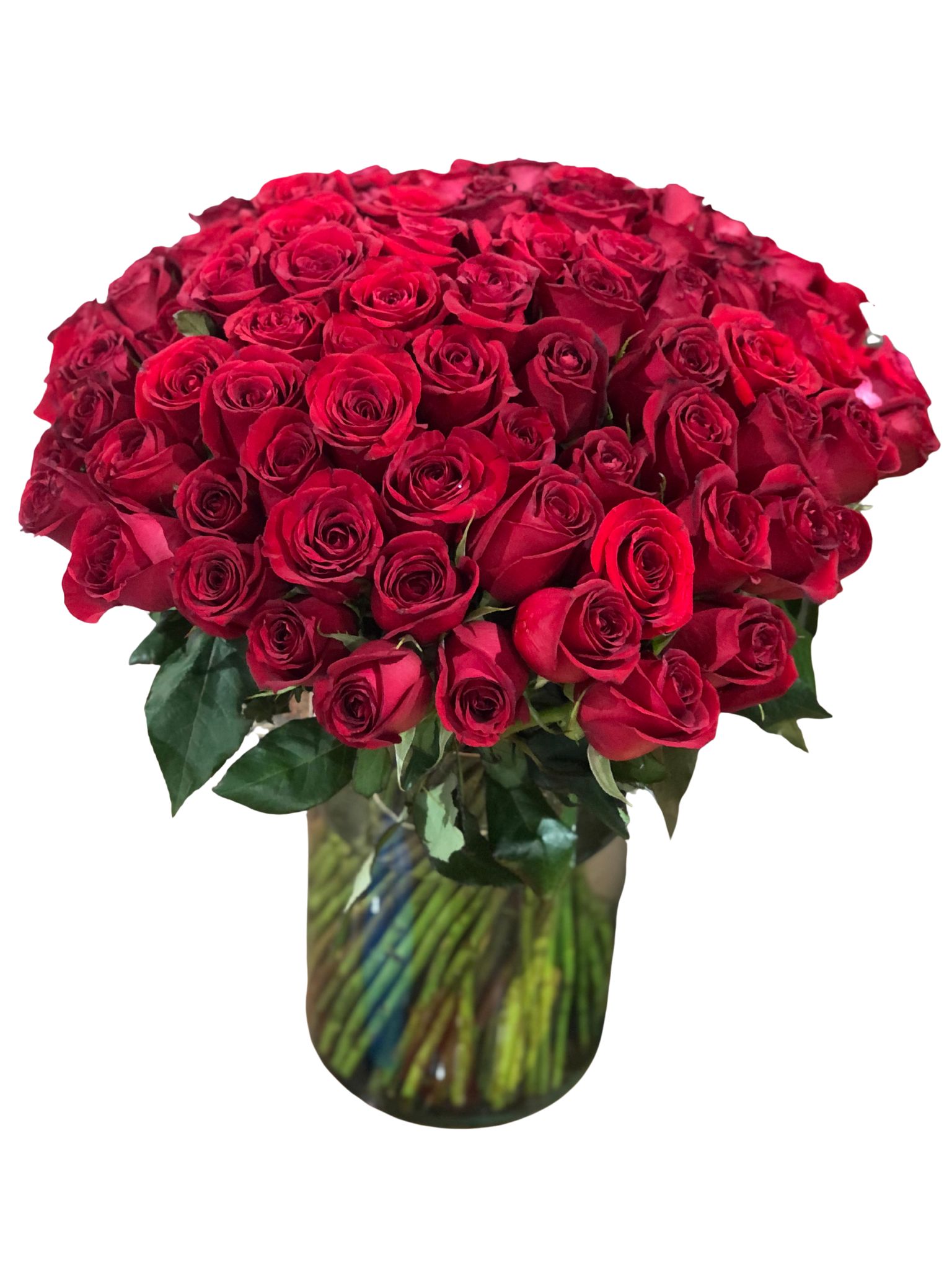 - 100 rosas rojas en florero.